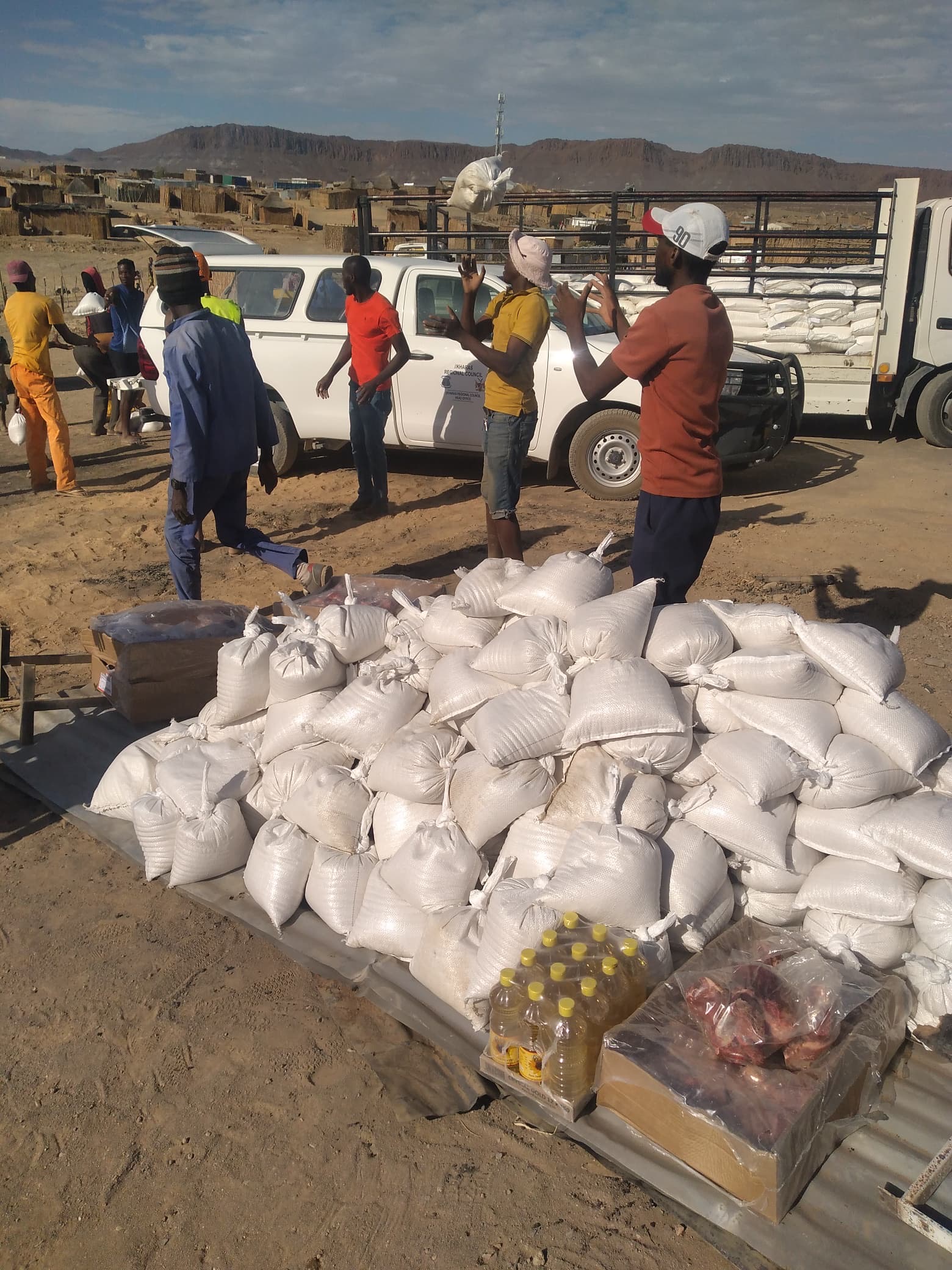 About 44 households were provided with food parcels and temporary tents following a fire outbreak at Aussenkehr last Saturday.