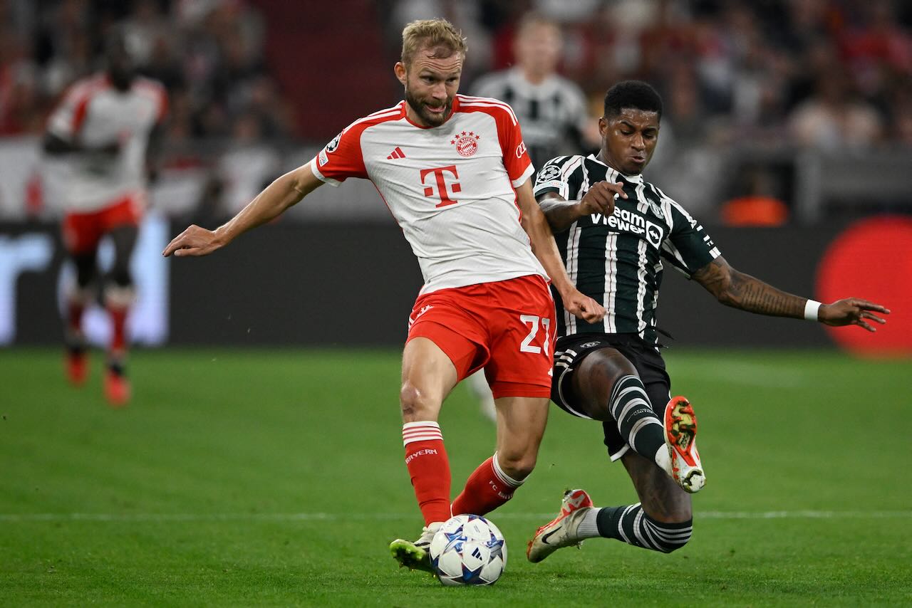 Leroy Sane gave Bayern the lead at the Allianz Arena with a shot that squirmed through the grasp of United goalkeeper Andre Onana, and Jamal Musiala set up Serge Gnabry to make it 2-0 just after the half-hour mark.