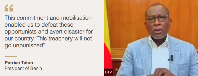 Nigeria, Benin’s large neighbour to the east, has described the coup attempt as a “direct assault on democracy”.