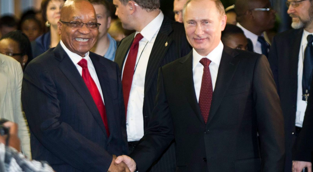 Zuma and his party’s adoration of Russian President Vladimir Putin is displayed with pride on MK party apparel.