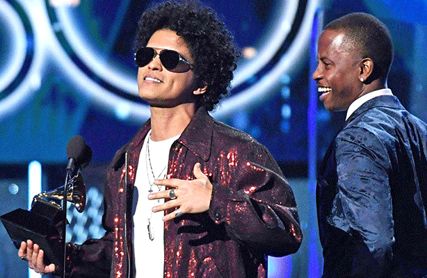 R&B artist Bruno Mars won the top prize at the Grammy Awards on Sunday in another victory for pop-driven music over rap, now the most popular genre in the United States.