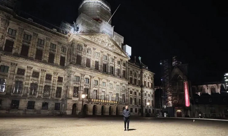 The musician shared photos of himself outside the Royal Palace in Amsterdam late at night, dressed modestly with his face covered by a mask to avoid drawing attention.