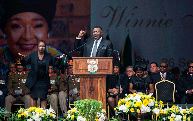 “My sisters, since she was unable to come and receive her award, I’d like to invite you that you can come to Namibia so that we can give you that honour, and also allow us as Swapo and Namibia to also honour her,” Geingob said during his speech at Madikizela-Mandela’s funeral.