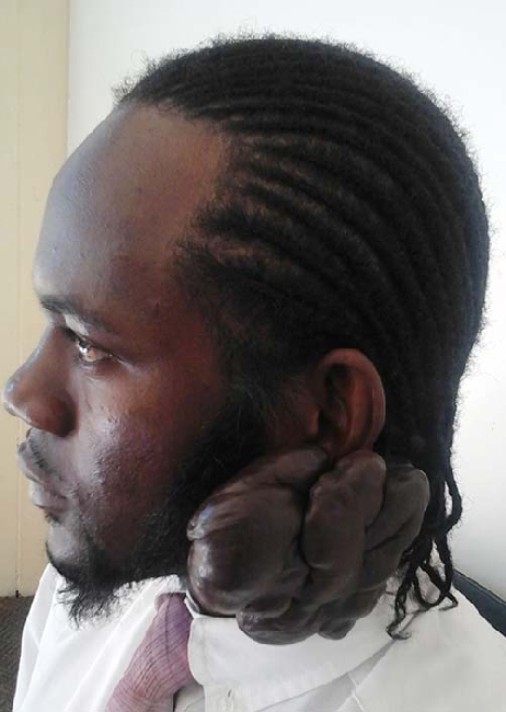 Sakeus Hailonga developed an abnormal growth on his lower left ear, neck and chest as a result of a car accident he was involved in at the age of eight.