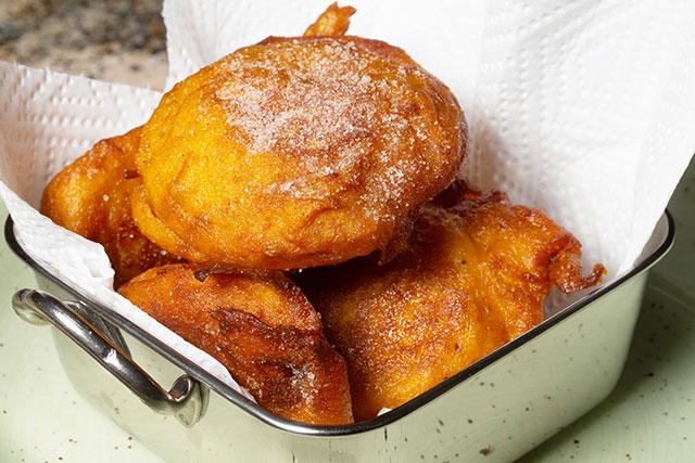 Mix all the ingredients together – then heat a non-stick frying pan with oil to fry the fritters in. Place the fritter mixture in the oil and fry until it is golden brown on both sides and cooked through. Drain the fritters on an absorbent paper towel sheet.