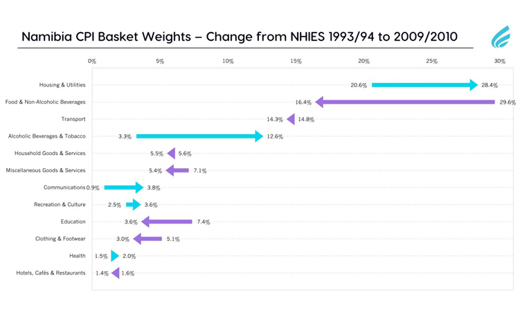 The Namibian Consumer Price Index is therefore no longer a representative indicator of the actual consumption patterns of Namibian households.
