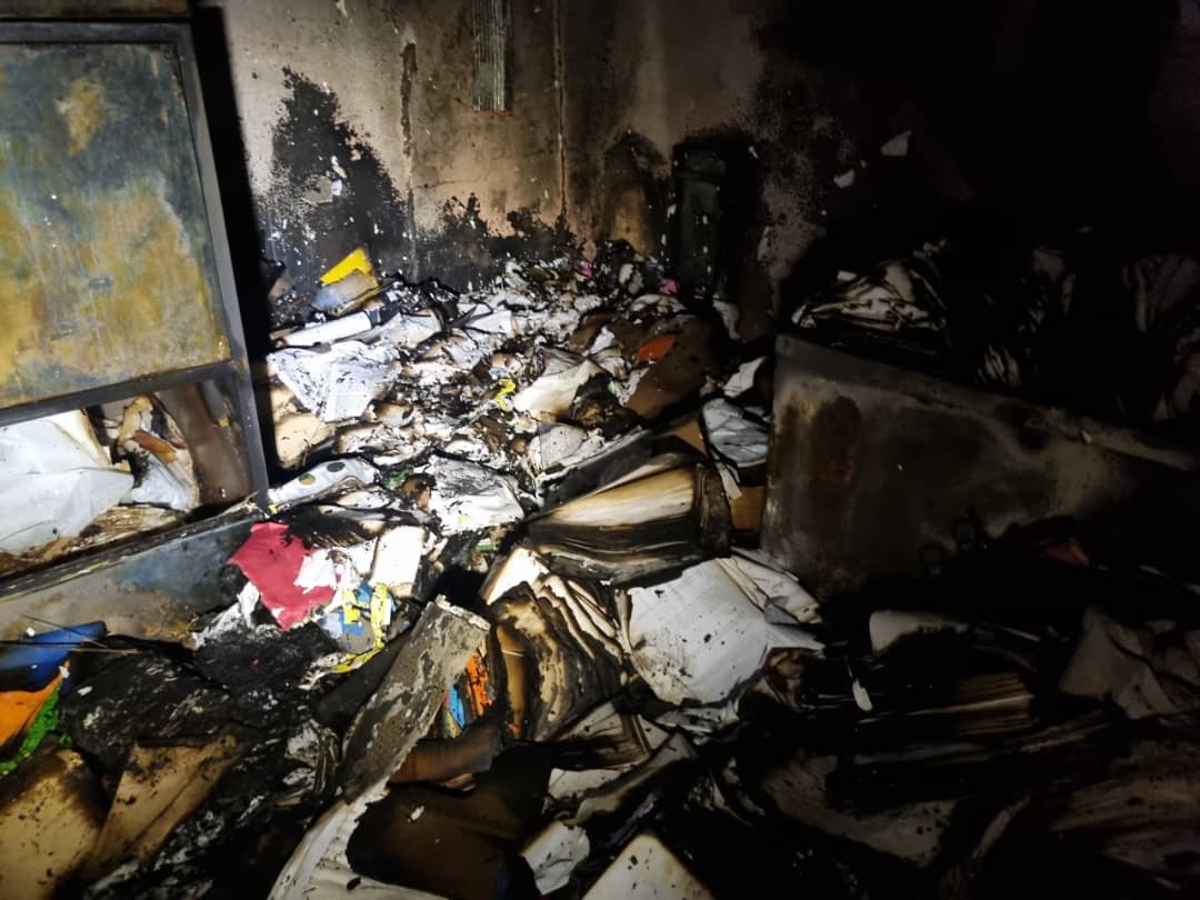 He said around 23h41, the security guards heard an explosion coming from the planning department and found that it was on fire.
