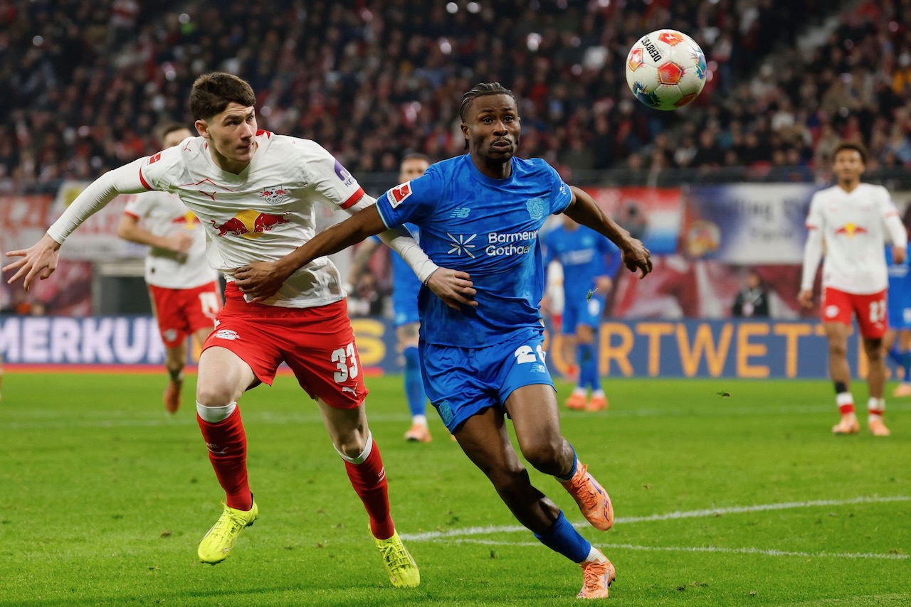 Xaver Schlager gave Leipzig the lead but Leverkusen struck back with Terrier and Schick both scoring inside four minutes just before halftime.