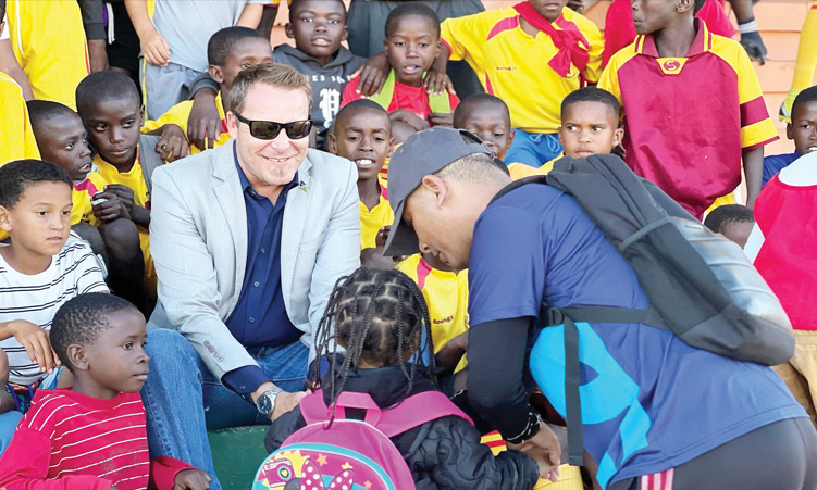 FROM DARKNESS TO JOY … Phil Balhao says he has risen from a dark place to become the mayor of one of Namibia’s most sought-after harbour towns in the south of the country. He says he enjoys sharing time with the town’s children. Photo: Contributed