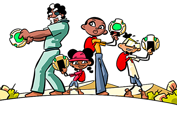 “On the one hand, we wanted them to look like kids anyone in Namibia can relate to, and on the other I designed a bunch of science-fiction elements that hopefully haven’;t really been seen in a Namibian story before: The shuttle they fly in, their high-tech base in a giant tree, and especially their Freedom Phones, which can load anything they can think of from the Free Net to help them on their adventures. It lets us tell stories about finding a balance between nature and new technologies in a way that stays focused on the fun.”