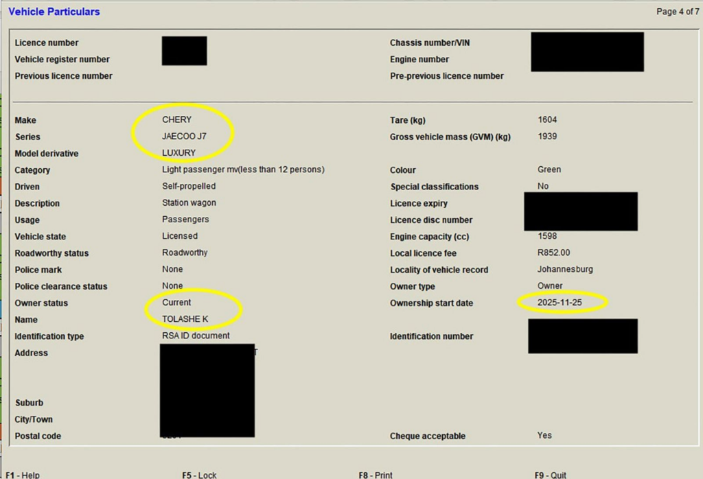 This fits with what we already knew from the original yellow BAIC’s records: that Kanyisa had sold it to online car marketplace Weelee on 28 October 2025, from where it had subsequently been bought by a Centurion engineer.