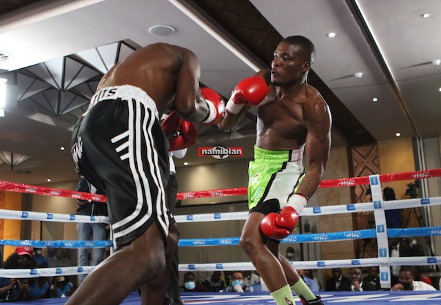 Alfeus Mosquito Shaanika wrapped up a perfect night with a win on points against Philip Musairi on his first return fight under the MTC Sunshine Promotions. He dropped his opponent in the third and fifth rounds, showing real power.