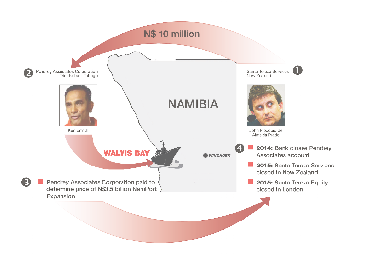 According to leaked court documents from Brazil ‘s ‘Car Wash ‘ scandal, Santa Tereza Services paid US$1 million to “Pendrey to develop the technical studies that will support the pricing and technical proposal for the expansion of the Walvis Bay Port.”