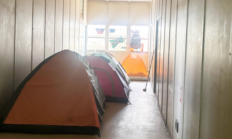 Occupant Maveerepi Hepute, who stays in the building with his wife and child, says the Ministry of Health and Social Services gave him a room at Windhoek Central Hospital, which is too small.