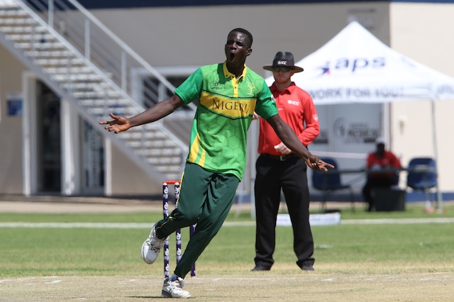 Samuel Mba was Nigeria’s star batsman, scoring 54, which included one six and five fours, while Sylvester Okpe scored 26.