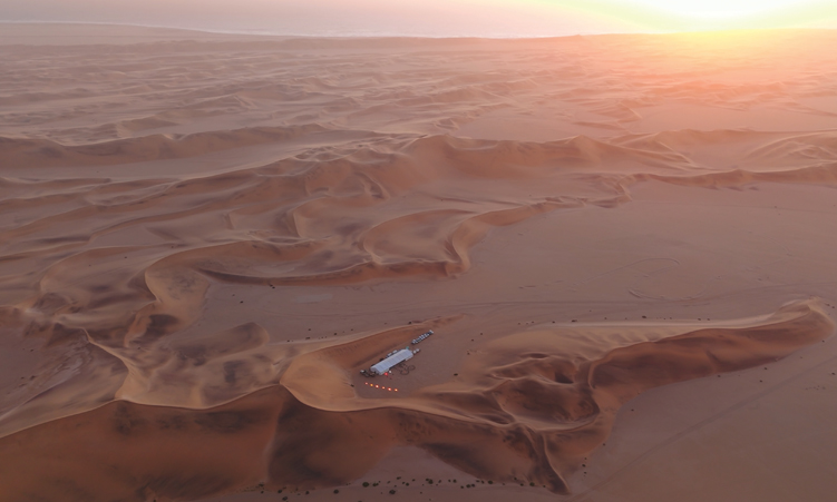 Guests are welcomed and led to a photobooth featuring the iconic Namibian dunes, one of the country’s many remarkable treasures. Everyone is excited, dancing to reggae music under the glow of the marquee tent. It is indeed a sight to see.