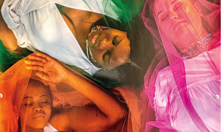 Linking ideas of identity, piety, purity, duty and womanhood to Christian and Hindu mythology as well as to contemporary society, Titus presents a layered visual investigation that considers what it means to have the potential to bear children, to exist as women without that potential and to navigate expectations and judgement either way.