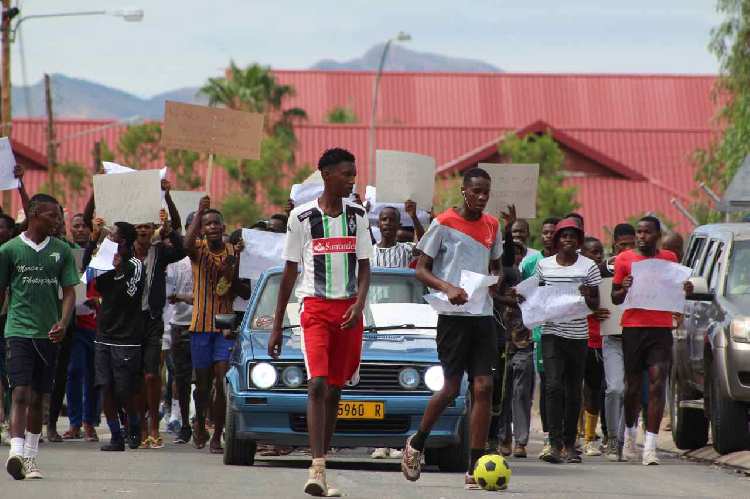 More than 100 footballers held a peaceful demonstration yesterday, marching through the streets of Katutura to deliver a petition at NFA Football House.