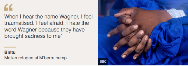 This is one of several similar testimonies collected by the BBC showing the tactics used by the Russian fighters as they waged a brutal counter-insurgency operation against Islamist militants in the West African nation – methods widely condemned by human rights groups.
