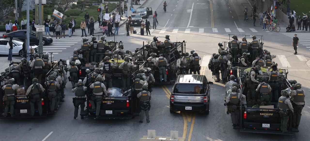 In Los Angeles, a rising number of people — immigrants, their family members, and supporters, including labour union leaders — rallied to protest against the ICE roundups. The protests initially centred on the part of the city that housed federal government office buildings, including a major courthouse. The Los Angeles police were called out in force to protect the buildings and exercise crowd control, but without ending the demonstrations.