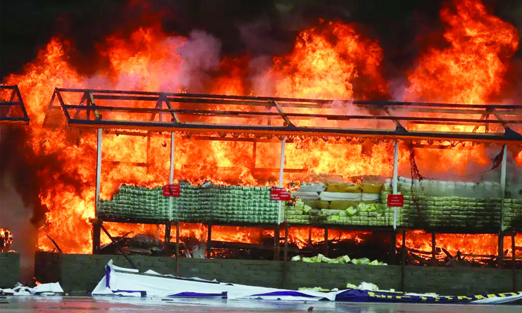 Illegal narcotics are burned during a cer- emony to mark Inter- national Day against Drug Abuse and Illicit Trafficking at Yangon, Myanmar. Photo: AP