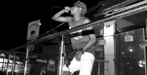 When the ‘Beste Afrikaans Rapper Van Die 061’, according to his Reverbnation account, performed his song as a warm-up earlier in the night, his crew walked in cheering from Independence Avenue, dancing and rapping along to his nothing-less-than-blunt lyrics.
